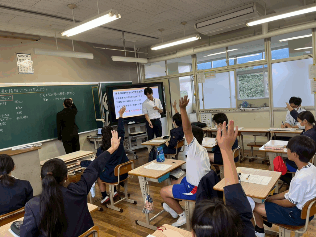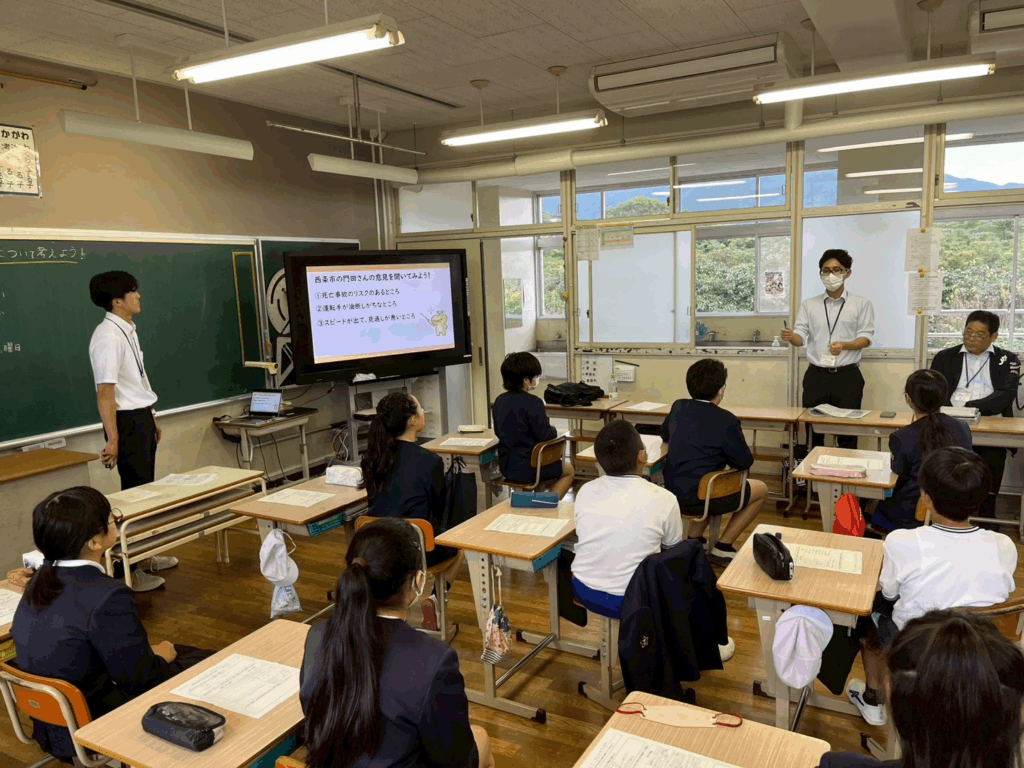 本日(2025年10月21日)に、井上昌善(愛媛大学教育学部准教授)・森田諒(学部3年生)・大石有美香(学部4年生)が、西条市立中川小学校にて、小学校6年生を対象に交通安全に関する授業実践を行いました。今回の授業は、中川小学校で取り組まれている通学路安全対策推進モデル地域研究事業の一環として、実施させていただきました。授業では「地域の安全を守るために必要な情報について考えよう」をテーマとし、ESRIジャパンと連携をして作成したデジタルマップを取り上げながら、地域の安全について考えさせる授業を行いました。以下は、授業の様子、成果と課題について記載しています。