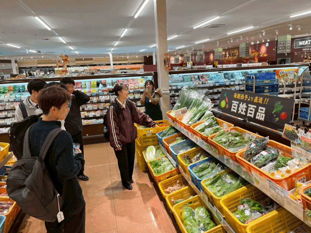 開店15分前から行列ができていて、百姓百品の人気を肌で感じました。また実際に、スーパーで百姓百品の商品を見て、百姓百品の魅力を学ぶことができました。取材にご協力いただいた、コープえひめ束本店さま・お客様、本日はありがとうございました。