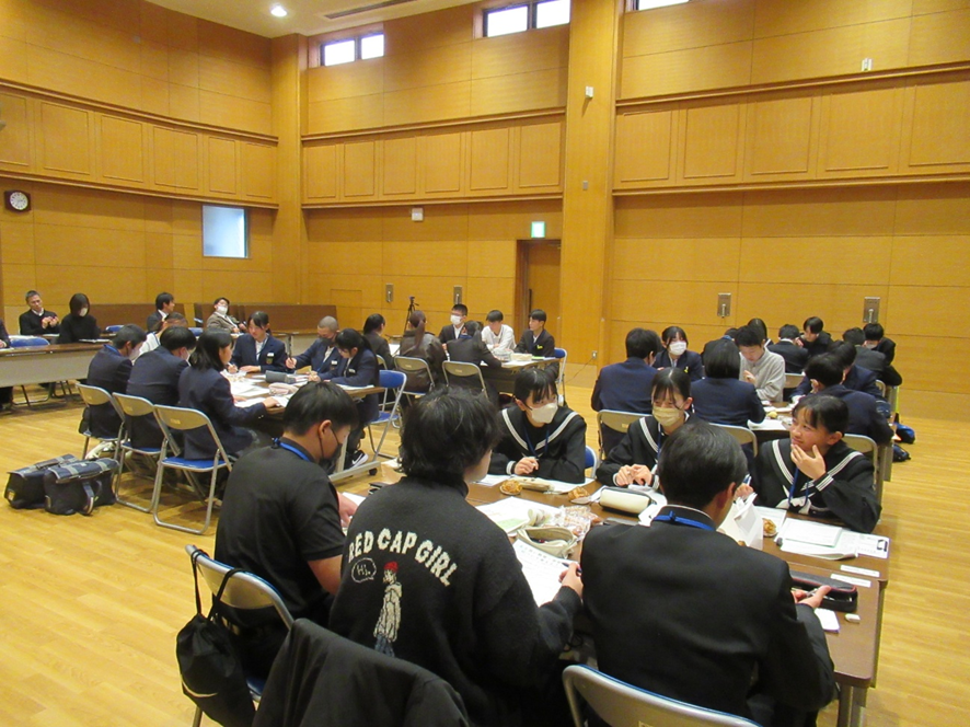 市内の中学校5校の生徒会メンバーが集まり、「みんなでより良い教育・学校教育について考えよう」をテーマについて、意見交換を行いました。