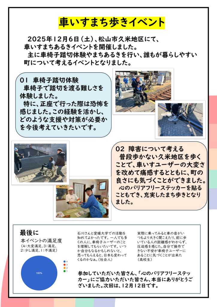 2025年12月6日(土)に、松山市久米地区にて、第二回目の車いすまち歩きイベントを実施しました。