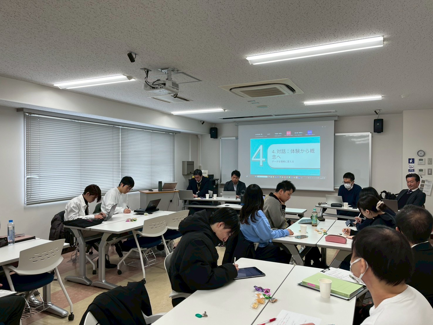 本研究室では、毎週実施する学部、大学院ごとのゼミに加えて、読書会や月に一度の合同ゼミを行っています。